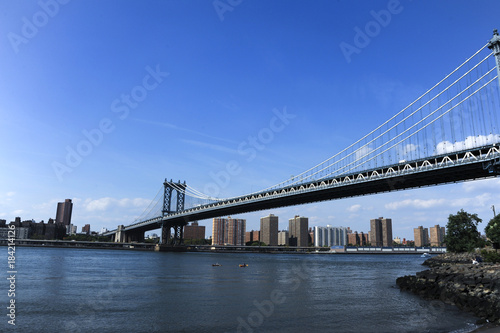 Brooklyn Bridge from Brooklyn side. Manhattan skyline view from Brooklyn.
