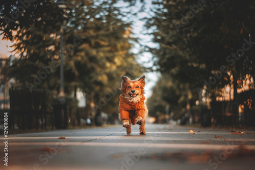 brown dog in autumn park