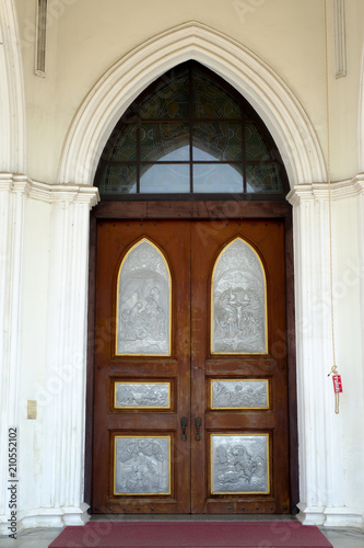 church, door, cathedral, nativity, catholic, white, old, travel, siam, architecture, building, religion, landmark, lady, our, beautiful, design, wooden, blue, beauty, background, sky, vintage, antique, tour tourism, ancient, god, christian