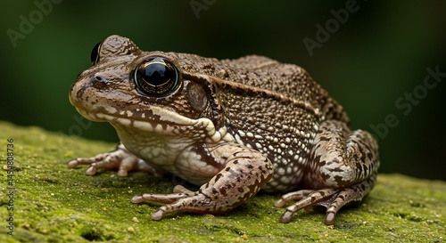 frog, brown, sitting, rock, nature, forest, serene, calm, wildlife, green, eye, foliage, calmness, harmony, environmentally friendly, conservation, moss, weathered, outdoors, timberland, photo, marketing, product, service, biodiversity, closeup, abstract, background, bold, composition, creative, digital, flat, sharpened, graphic