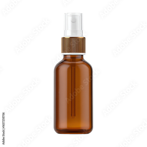 Brown glass spray bottle with golden nozzle cap for natural product storage and dispensing