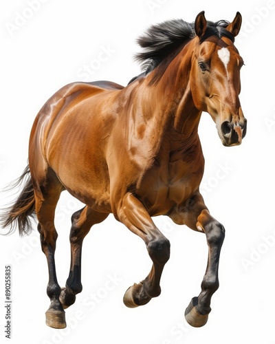 horse, brown horse, gallop, mane, white background, isolated, star, forehead, muscle, alert, focused, equine, animal, mammal, wildlife, nature, speed, energy, motion, stride, hoof, leg, tail, digital artwork, graphic design, portrait, closeup, action, dynamic, movement, purebred, thoroughbred, racehorse, sport, equestrian, animal welfare, animal rights