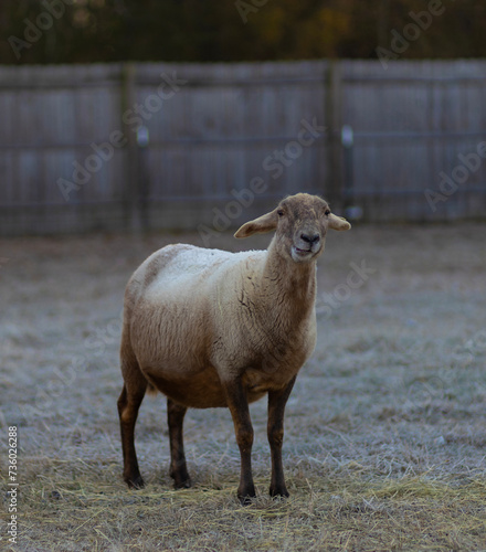 sheep, winter, frost, pasture, ewe, cold, farm animal, animal, pet, farm, agriculture, mouton, food, female, hair, farm animal, mammal, nature, nobody, no people, head, face, grass, nose, mouth, farming, rural, north carolina, domestic, mouton, herbivore, country, wool, white, orange, yellow, brown, fence, animal