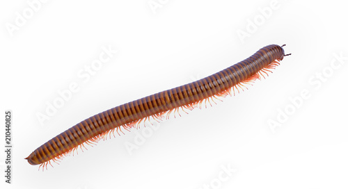 brown millipede isolated on white background