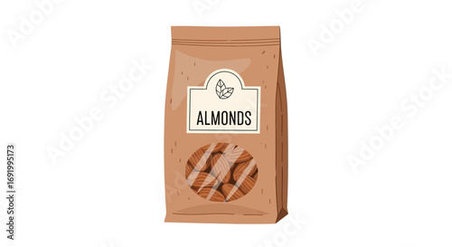 almond, bag, brown, paper, cardboard box, food, snack, healthy, nourishment, diet, protein, vegetarian, vegan, organic, natural, wholesome, delicious, tasty, crunchy, roasted, raw, nut, kernel, seed, agriculture, farming, harvest, product, design, label, branding, illustration, graphic, marketing, sale, retail, supermarket, store, purchase, consumer, eat, eating, lifestyle, well-being, energy, vitamin, mineral