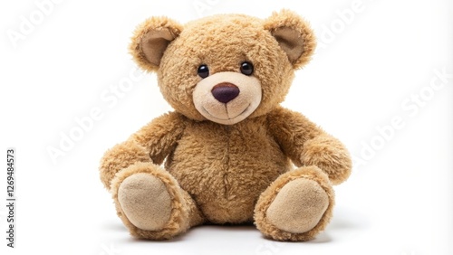 teddy, bear, plush, toy, brown, beige, fluffy, soft, cute, cuddly, adorable, stuffed, animal, object, white, background, isolated, studio, photo, image, product, picture, graphic, design, element, illustration, texture, fabric, fur, paw, sitting, front, view, single, 1, item, children, children, play, childhood, innocence, comfort