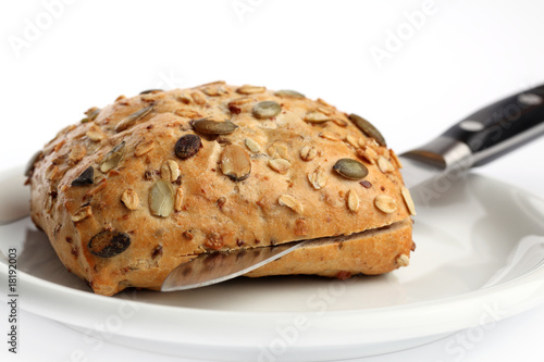 bread roll, breakfast, knife, slit, organic, plate, release, white, food, food, food, pastry