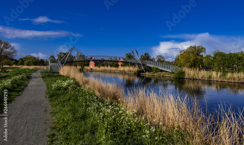 bridge, countryside, panorama, flux, nature, landmark, excursion, summer, footbridge, waterway, lower saxony