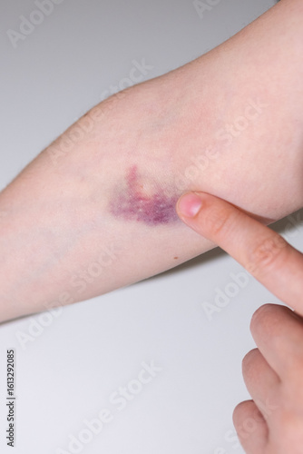 bruise on female hand skin, hematoma on elbow area from blood draw, hurt mark, medical treatment, symptom medical condition, body pain, Health care