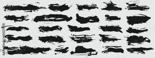 Brush strokes. Vector paintbrush set. Grunge design elements. Long text boxes. Dirty texture banners. Ink splatters. Dry hand drawn smear. Painted objects