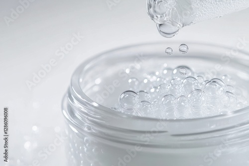 Bubbles cascade from a dropper into a clear glass jar, highlighting the beauty of liquid texture and scientific exploration. Generative AI