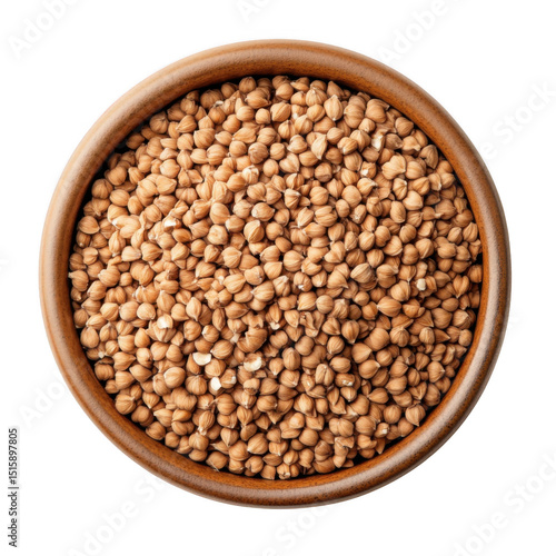 Buckwheat grains in a wooden bowl isolated on transparent background.