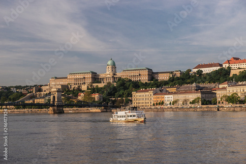 Budapest is the capital of Hungary.Beautiful big old town.The magnificent city is rich in history.The photo is made on a sunny day.City landscape with a wide large river.Beautiful buildings.Landscape.