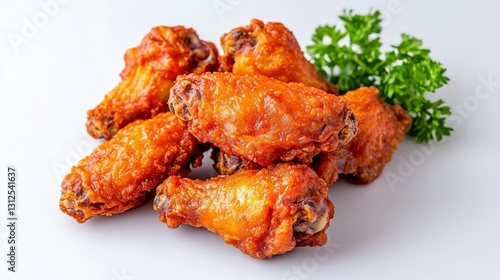 Buffalo wings with golden crispy crust, crunchy perfection, photorealistic, isolated on white background