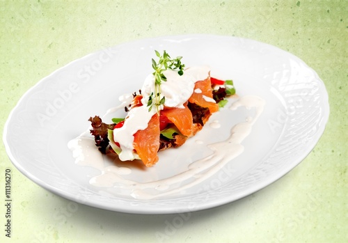 buffet, salmon, smoked salmon, canape, food, toast, epicure, seafood, dill, bread, snack, cream cheese