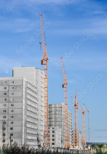 crane, construction, building, sky, site, urban, cloud, blue, cement, housing, apartment, steel, new, estate, built, scaffolding, highrise, development, concrete, equipment, modern, tall, planning, high, architecture, city, growth, picking, home, real, house, scene, residential, exterior, block, vertical