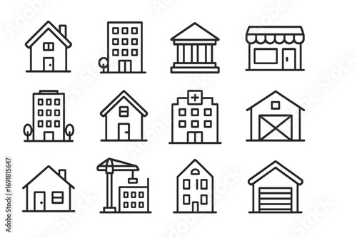 building, house, icon, real estate, construction, architecture, vector, property, home, line, outline, symbol, set, illustration, apartment, bank, hospital, store, shop, barn, garage, office, pictogram, simple, modern, minimal, city, urban, graphic, design, web, app, housing, residential, commercial, facades, exterior, town, editable, stroke, collection