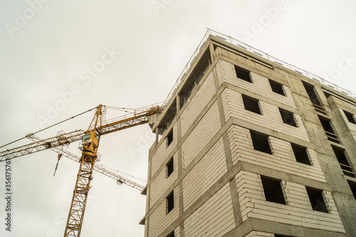 construction, building, crane, architecture, sky, house, site, industry, development, work, new, skyscraper, concrete, build, structure, city, tower, urban, blue, business, brick, high, equipment, built, apartment