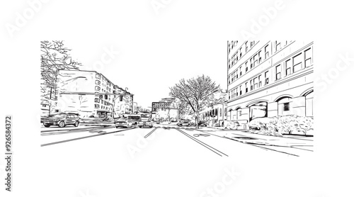 Building view with landmark of Stamford is the city in USA. Hand drawn sketch illustration in vector.