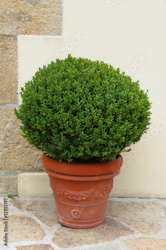box, ball, pot, land, cooked, plant, plant, height, trim, leaf, foliage, environment, garden, gardener, nature, outside, saint-pierre, paving