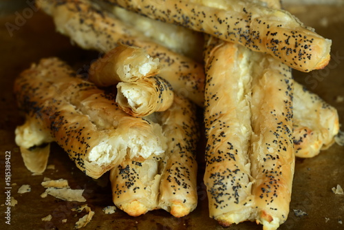 Bulgarian national cuisine, Banicza with brynza, Rollini with brynza cheese, cheese feta-brynza,