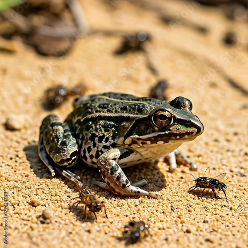 Bullfrog on the sand eating something real image of frog.