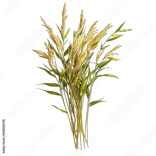 grass, bunch, dried, stalk, wheat, gold, beige, green, nature, plant, flora, botanical, agricultural, organic, rural, field, harvest, summer, autumn, yellow, light, texture, detailed, closeup, image, isolated, background, photographic, representation, design, element, graphic, decorative, art, illustration, seed, stem, grass