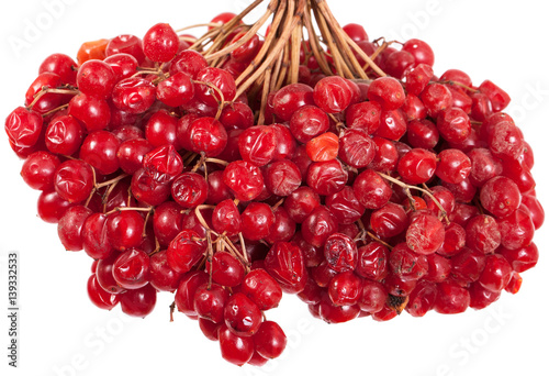 berry, viburnum, bunch, beam, collected, helpful, bright, red, scarlet, isolate, harvest