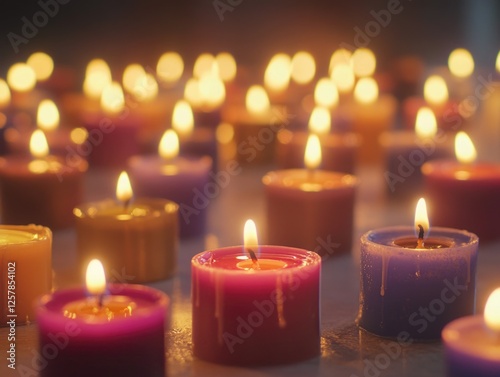 candlelight, lit, candle, colourful, display, flames, glowing, wax, closeup, soft, light, sharpened, decorative, burning, aesthetic, high-coloured, photo, warm, ambience, beauty, effect, illuminated
