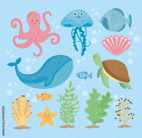 underwater, aquatic, aquarium, sea, ocean, ocean life, beauty, water, biodiversity, colourful, coral, ecosystem, shell, seaweed, wild plant, hard, fish, whale, 13, jellyfish, octopus, pink, animal, number, 13, environment, seascape, marin, ocean life, wildlife, natural, nature, illustration, vector, background, ray, soft, funny, character, tropical, adorable, mascot, cartoon, comic, wild