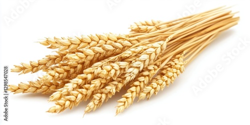 Bundles of golden wheat resting on a clean white surface ready for harvest in autumn season