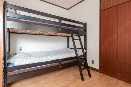 Bunk bed and mattress in guest house room