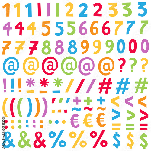 alphabet, pay, letter, colourful, set, text, word, and, percent, plus, question mark, exclamation mark, write, colours, colourful, distinct, typography, handwriting, rhomb, children, childish, colourful, friendly, signs, blue, red, green, yellow, orange, purple, purple, vector, isolated, white, release