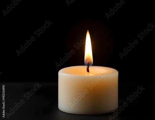 Burning candle on black background