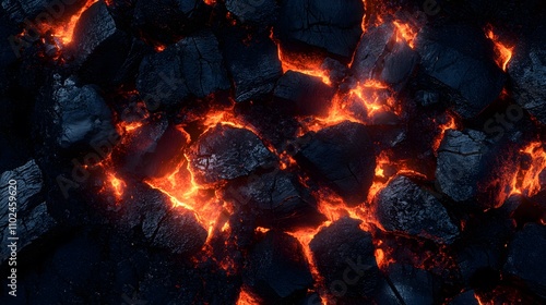 Burning coal texture in black and red tones with a fier