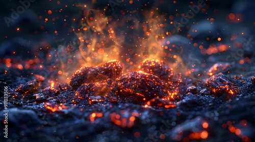 fire, ember, dark, hot, glowing, spark, smoke, black, red, orange, night, heat, burning, flames, coal, ash, light, warmth, intense, bright, energy, sparkling, magical, powerful, danger, wild, natural, rustic, primitive, element, nature, abstract, background, texture, art