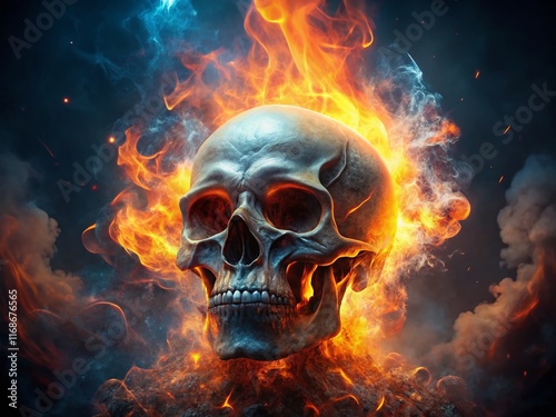 Burning Skull Surreal Photography: Infernal Cranium in Fiery Embrace