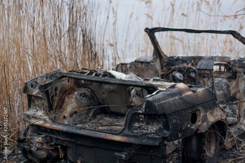 burnt car, car werc, set on fire, arsonist, burnt car in the open air