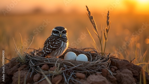 owl, nest, egg, sunrise, savanna, africa, wildlife, photo, hand-held, telephoto, focal length, early morning, golden light, twig, feather, eggshell, vulnerable, conservation, awareness, african wildlife, golden hour, detail, feather