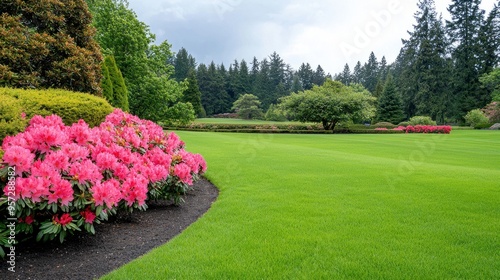 Burst of Color: Stunning Rhododendron Bushes Adorn Blooming Garden Landscape with Vibrant Petals