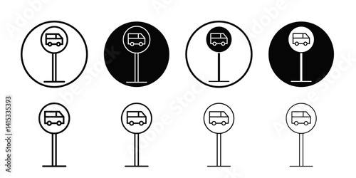 Bus sign icon Black and white outline vector