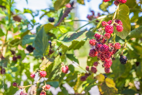 Bush with blackberries. Blackberries ripen on a bush in summer. Berries. Blackberry