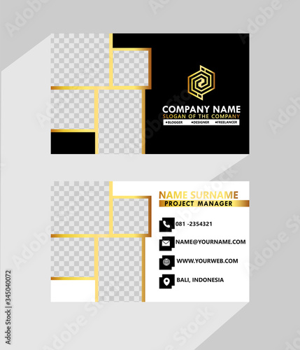 Business name card abstract background. Vector illustration model black white gold.