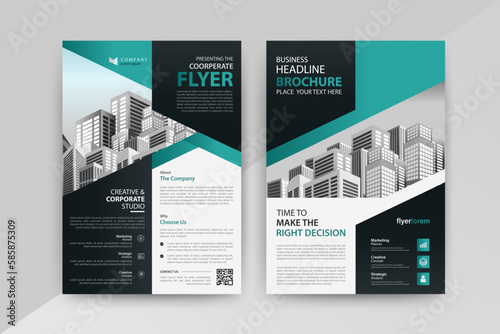 Business abstract vector template for Brochure, Flyer with Cyan and Black Color, Front and back.