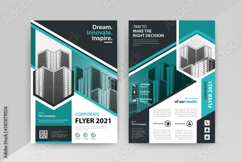 Business abstract vector template for Brochure, Flyer with Cyan and Black Color, Front and back.