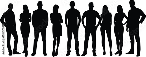 Business and Casual People Silhouette Vector Set, Standing Pose Collection