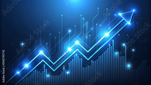 Business Arrow Illustration with Upward Growth Line & Circuit Technology on Dark Blue Background - Financial Investment & Success Graphs