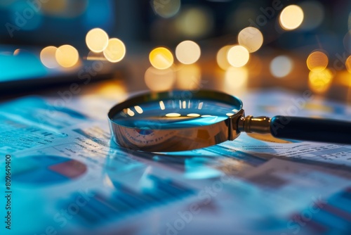 Business audit stock financial finance management on analysis data strategy with magnifying glass, magnifying glass on paper, AI generated