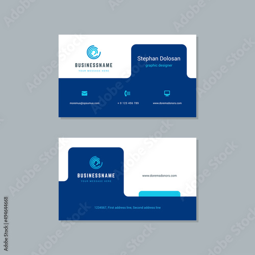 Business card design trendy blue colors template modern corporate branding style vector illustration. Two sides with abstract logo on clean background.