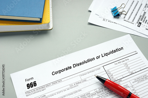 Business concept about Form 966 Corporate Dissolution or Liquidation with phrase on the page.